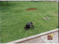 Red poses quickly, then slaps the ground and leaps up. |