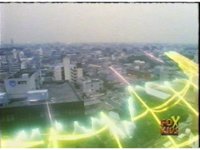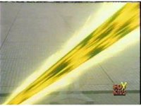 Struck by the yellow energy slice, the generator disintegrates, taking with it the forcefield dome. |