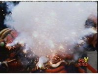 Push in on Destruxo, talking, Yellow responds, then she and Pink whip out their Quasar Sabers, before rushing forth at the monster. |