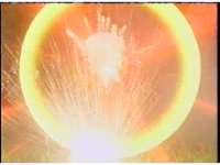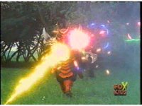 Close on Destruxo readying his claw arm, then firing ball of fire forth from it. |