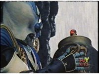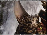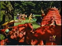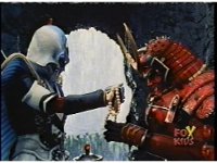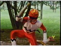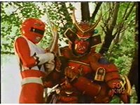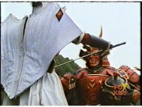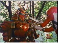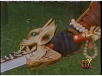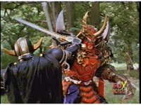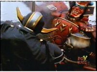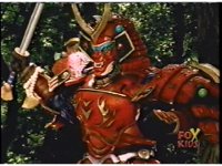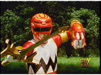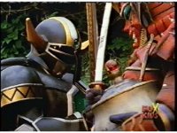 The Rangers finally catch up to Destruxo, so Red leaps up, whips out his Magna Talon, and strikes at the monster, but he blocks with his katana, and holds him off. |