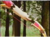 Cuts follow-ups of the pair facing off, then rushing along and leaping past each other. |