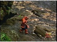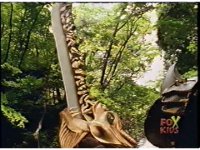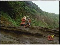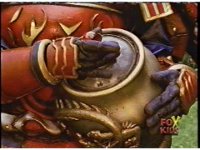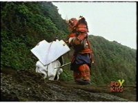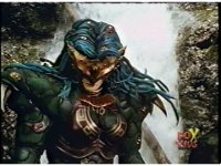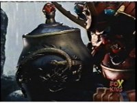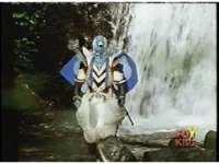 Magna Defender talks to himself again, then suddenly spots Treacheron near the waterfall, changing back into Impostra, picking up the discarded jar, then leaving. |