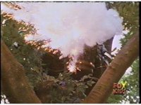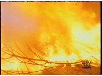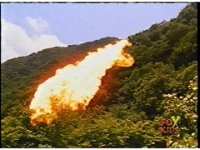 Fire stream spews across the forest, setting ablaze to the trees.. |
