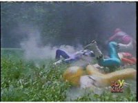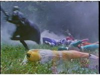 Destruxo collapses and explodes, the Orion Armored Rangers then begin to turn around about face. |