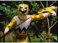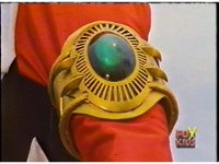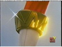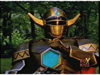 The Lights of Orion suddenly float down and hover just above the Rangers, Magna Defender reacting. Each of the Rangers reacts and gawks at the big round glowing gold strange thing. Magna Defender talks to himself as he realizes what's going on. |