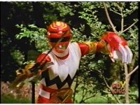 Cuts before he fires his Blaster at them, cuts follow-ups of their getting spark blasted down, then Red getting back up and aiming again. |