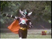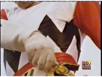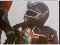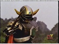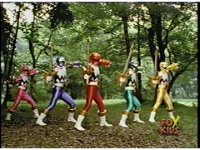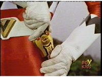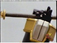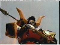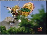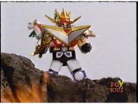 The head and horns pop out of the Lion section as it floats up, Wild Cat & Lion becoming arms, as all five Zords come together to form the Galaxy Megazord, with its saber forming in a crackle of electricity. |