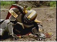 Defender Torozord's spear suddenly loses its charge, and it begins to internally struggle, Red reacting, as DT glows, and reverts back to Torozord, sending Magna Defender falling down to the ground. |
