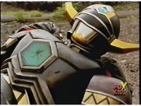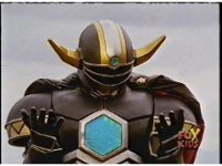 Galaxy Megazord shines golden, gaining Orion Armor. |