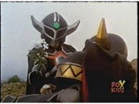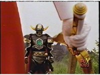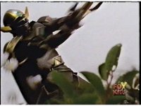Magna Defender talks to Torozord, who turns around and leaves. MD reaches out and talks sadly, when Freaky Tiki streakeports in behind him and spark bursts him, the Rangers reacting. |