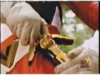 Recycled, per source. Cuts follow-up of MD taking dart, talking to Torozord, doubling over, then jabbing dart into chest gem. |
