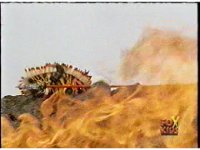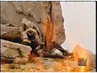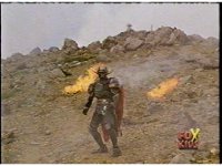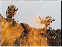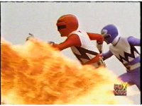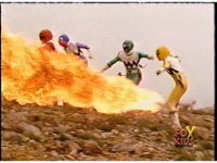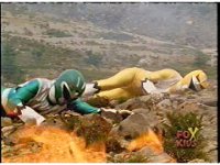 Red ceases talking to his wrist, then leads the team in rushing up the mountain, energy swirling about in the flames of the volcano, soon spewing a blaze stream at the Rangers, knocking them down, some of them talking. |