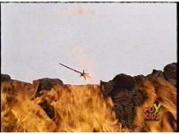 Freaky Tiki's spear goes flying into the volcano, causing the flames to rise and the area to being quaking, Green reacting in his cockpit. |