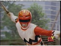 Red rolls and recovers as his teammates regroup around him. They ready their Quasar Sabers, then do the group Lights of Orion activation gestures. |
