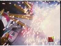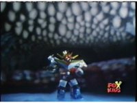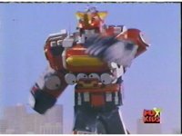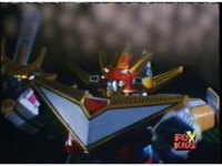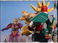The head and horns pop out of the Lion section as it floats up, Wild Cat & Lion becoming arms, as all five Zords come together to form the Galaxy Megazord, with its saber forming in a crackle of electricity. |