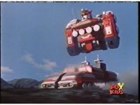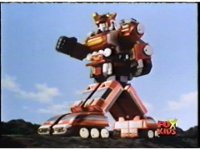 The body of the Centaurus Megazord begins to rise up, finishing formation, while in motion. |