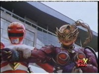 Cuts follow-ups of Red hopping of Cycle, which then reverts to Orion Armor on the Rangers. |