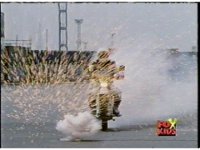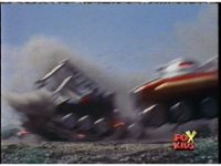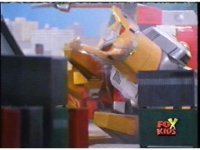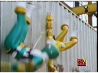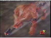 Cuts follow-ups of monster sparkily scratching GM upsidedown then Yellow & Pink cockpit shots as GM staggers. |