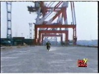 Red turns the Capsular Cycle around and follows Maronda down a narrow space between shipping containers, smashing through boxes as they exit. |