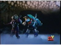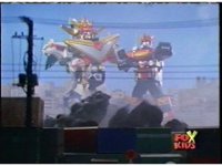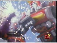 Meaty chunks of debris fall down before Galaxy & Centaurus Megazords. |