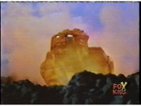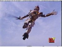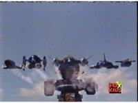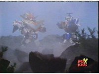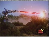 Meaty chunks of debris fall down before Galaxy & Stratoforce Megazords. |