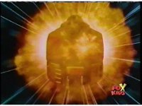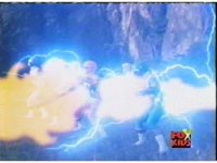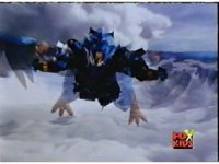 Blue uses his Cosma Claw on Quakemaker, sparkily taking him down. |
