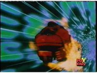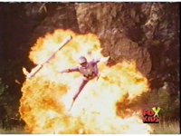 Cuts before he lands and Cycle reverts to Orion Armor. US replaces it, in fact. Cuts follow-up of monster drinking. |