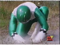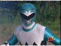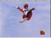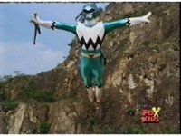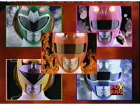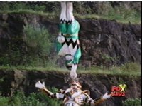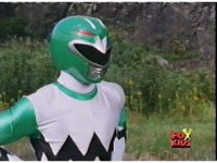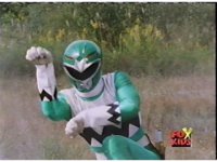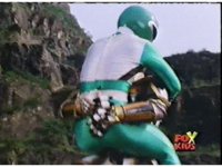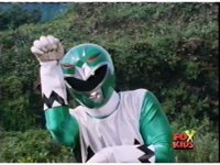 Green leaps over the other Rangers and converts into a glowing green ball. |
