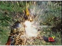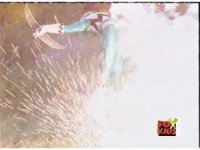 Sharp zoom in on Chameliac, flailing and smoking. |
