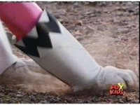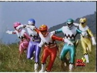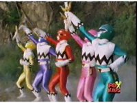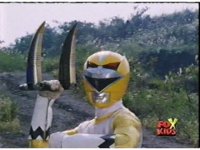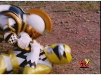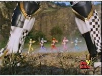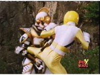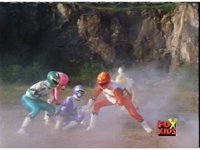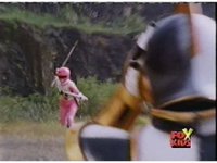 The Rangers charge forth, convert into a ball of golden energy, which Chameliac kicks away, breaking it back into the five Rangers, Pink then reacting. |