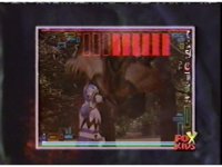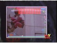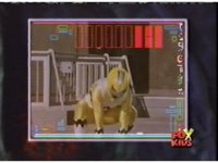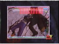 Chameliac reacts, then charges forth, so Red leaps up and does several midair kicks into his chest, knocking him back. |