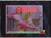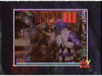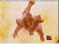 Kicked down, Chameliac recovers and poses, as Stratoforce lands and poses. |