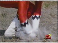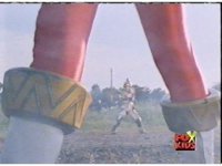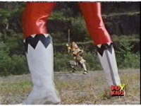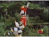 Chameliac turns and looks as Red leaps at him, dodging, the Ranger then landing and recovering posed. |