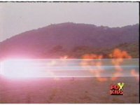 The red energy streak rips through Chameliac, exploding massively, which flings the monster away and over. |
