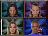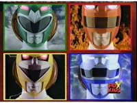 Yellow, Red, Green, & Blue Galaxy Rangers morph. |