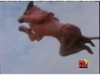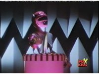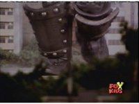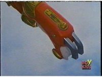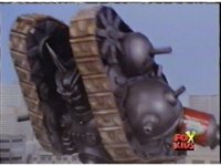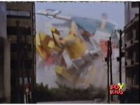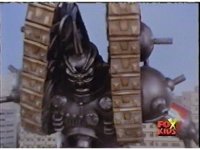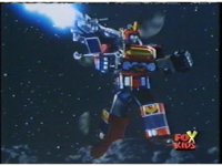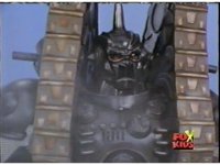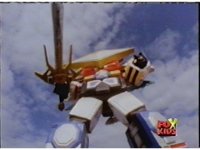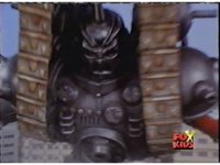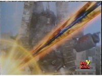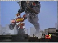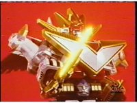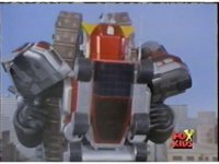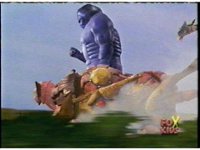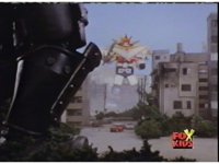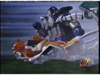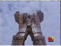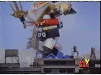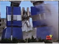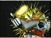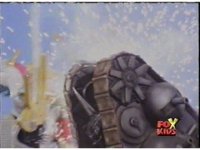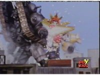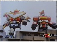 Galaxy Megazord lands before Ironite. They then pace to their right, before Ironite charges forth, sparkily slamming through GM twice, then once more, knocking it down. |
