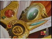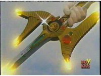 Galaxy Megazord's Orion Armored Saber begins to glow as it holds it forth. |
