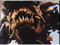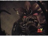 The driver runs away, as Grunchor spews purple bile onto the car, dissolving it completely, causing the monster to roar again. |