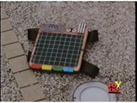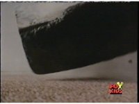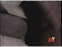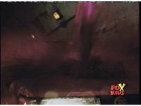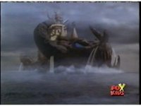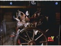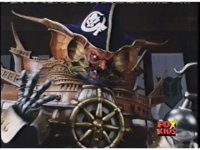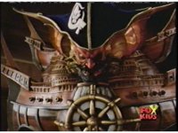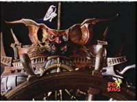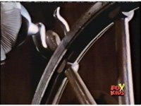 Pan up Grunchor, onto the castle, where Captain Mutiny talks a bit, then grips the steering wheel and kicks the bottom rung again. |