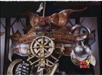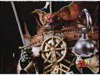 The Axe sparkily strikes Castle Mutiny, causing Captain Mutiny to talk and quickly turn the wheel, Grunchor sparkily jabbing Defender Torozord with his claws, causing it pain, Red reaching out, and Pink reacting. |