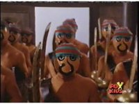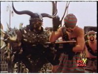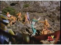 Barbarax turns and sees four of the Rangers arriving, he speaks, they reply, he talks again, then the Swabbies charge forth. |