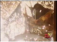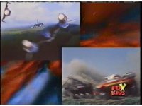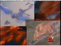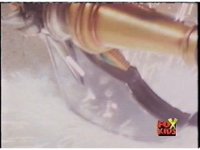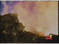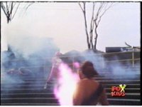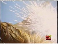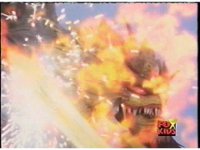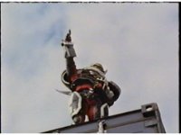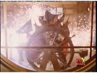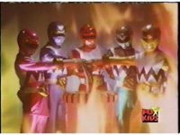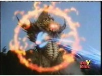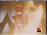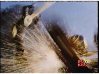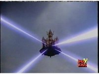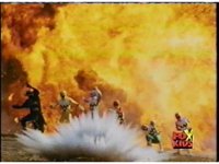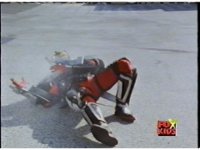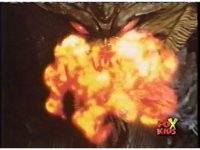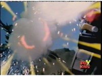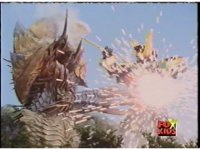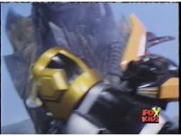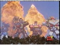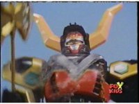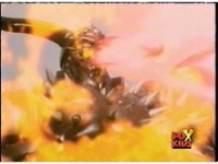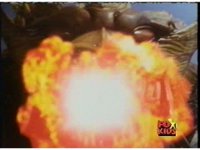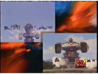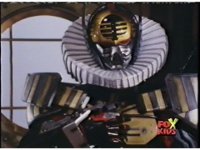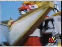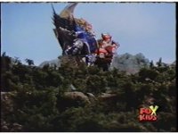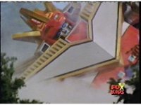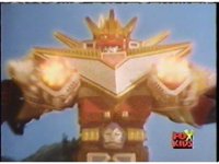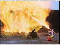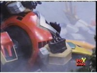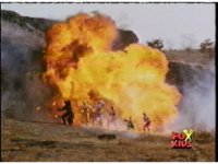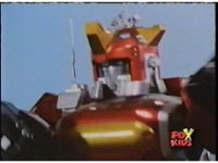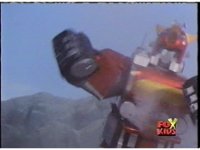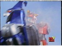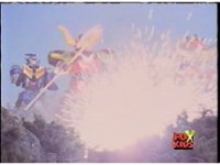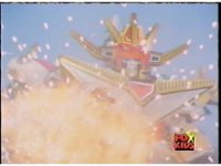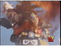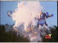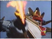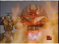 Pan up on Galaxy Megazord, while within, Red motions his arms, causing the cockpit to ignite into flames. |