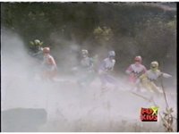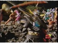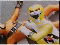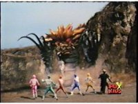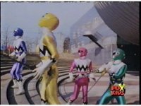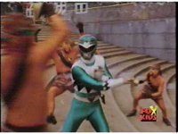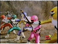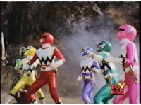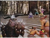 Deviot spreads his arms, talking a bit, then turning to our left,, and seeing the five Rangers rushing in, they then stop, Red nod-talks and points. Deviot responds, motioning his hand and bowing. Yellow anxiously rushes into battle. |