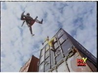Cuts prior shot of Swabbies arriving in truck. US replaces follow-up of Barbarax kicking Swabbie away. |