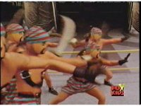 US replaces him hitting one in the testicles with it. Cuts follow-up of Blue briefly taking on Barbarax. |