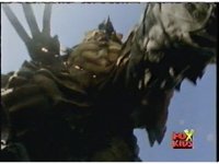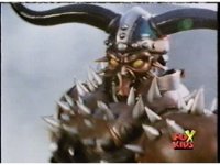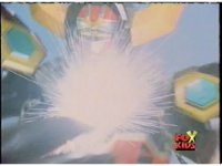 Grunchor sparkily slashes Defender Torozord down, then begins to fire energy blasts from his claws at it, when Centaurus & Stratoforce step in and take the blasts, sparkily knocking both down. |