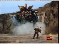 Red nod-talks, raises fist, then reaches forth, flames rising before him. Galaxy Megazord pulls out its Condor, zoom in as Red motions hands forth, then fires the Missile Mode at Grunchor, he merely smacks it back, bursting GM and shaking up Red. |
