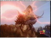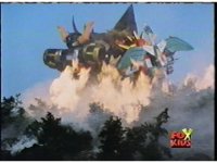 Stratoforce & Centaurus Megazords march forth and grab Grunchor, pushing him back. He releases electricity, sparkily frying them down. |