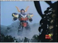 Mega Defender poses and leaps up, Torozord opens up, he drops in. |